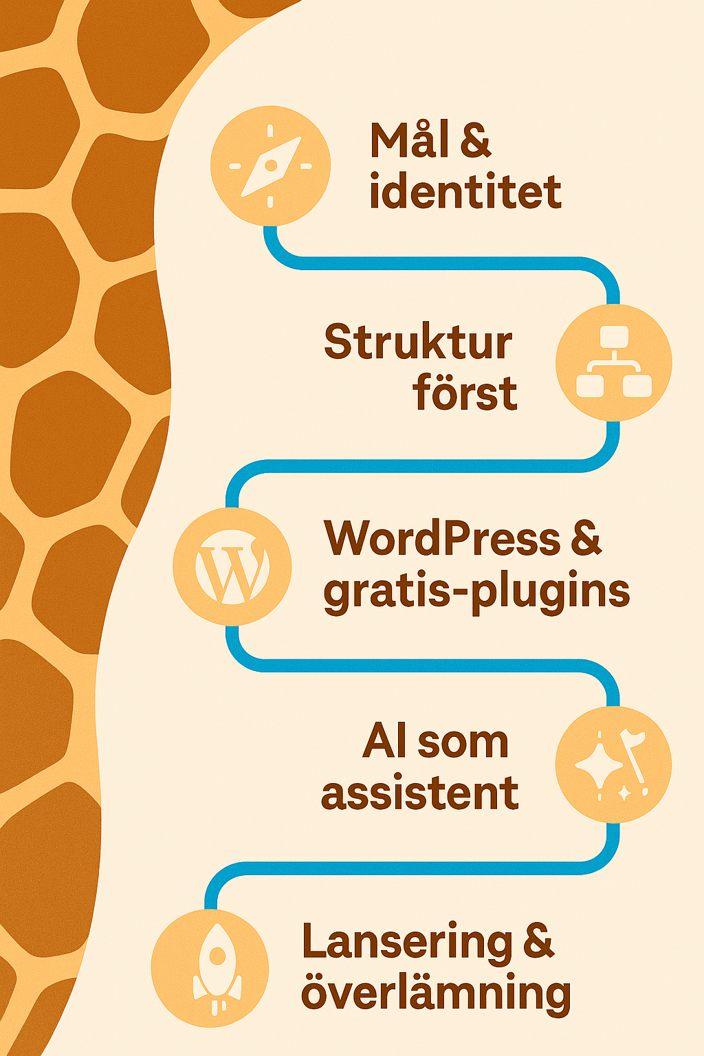 Mål & identitet – vi ringar in vad sidan ska uppnå och hur er ton och visuella stil ska kännas.